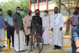 As part of our Green Education Programme in collaboration with Kerala State Youth Welfare Board, Sri. P. Biju, the Vice-Chairperson of the Board, officially handed over a hundred bicycles for our students during a function held on the college Open Stage at 11 a.m. on Thursday, 20 August 2020. Eleven students representing our various departments received their bicycles during the function. Principal of the college Dr(Fr)V Y Dasappan SJ, college Manager Adv.(Fr) Pious Vachaparambil SJ, Mr. Rajesh and Mrs. Edna Richard (Vice-Principals), Mr. Sheen Jose (Office Superintendent) and eleven student representatives participated in the function